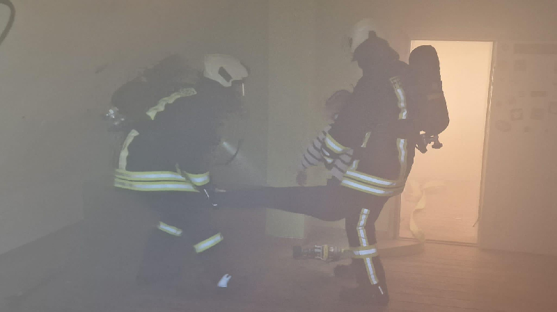 Einsatzübung mit Menschenrettung, Suche mit zwei Trupps unter PA