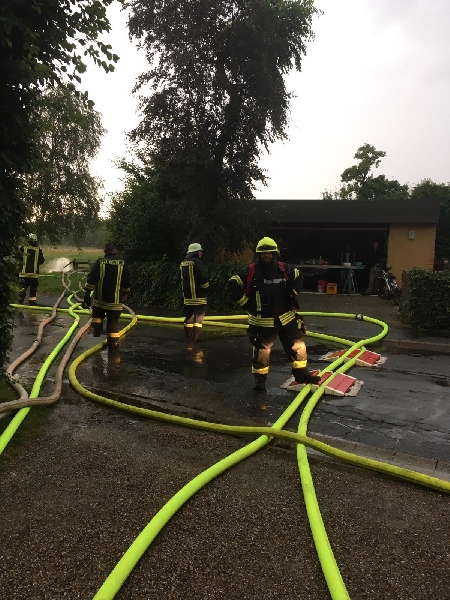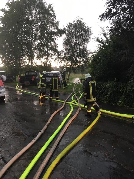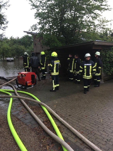 Mit insgesamt zwei Tragkraftspritzen und der Pumpe auf dem TLF 16/24 TR wurde bei dieser Einsatzstelle fünf Stunden gegen die Wassermengen gearbeitet.