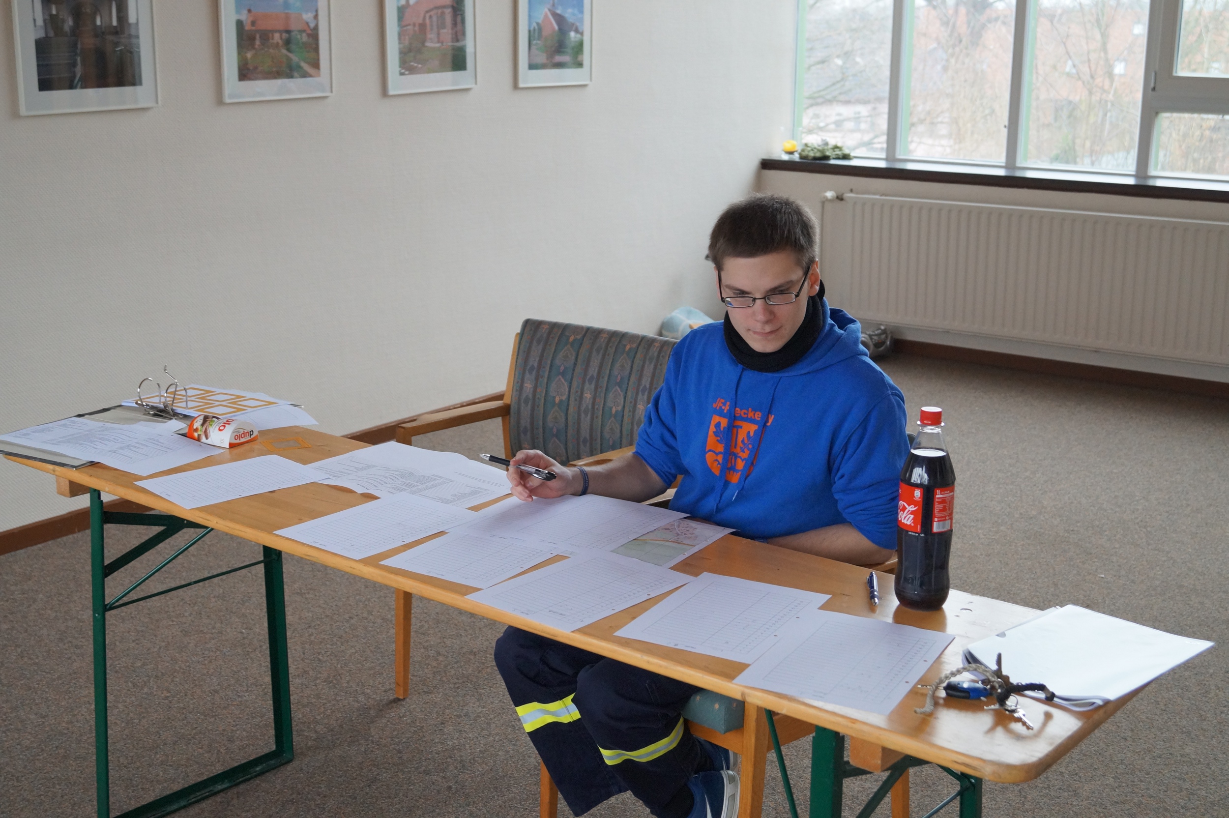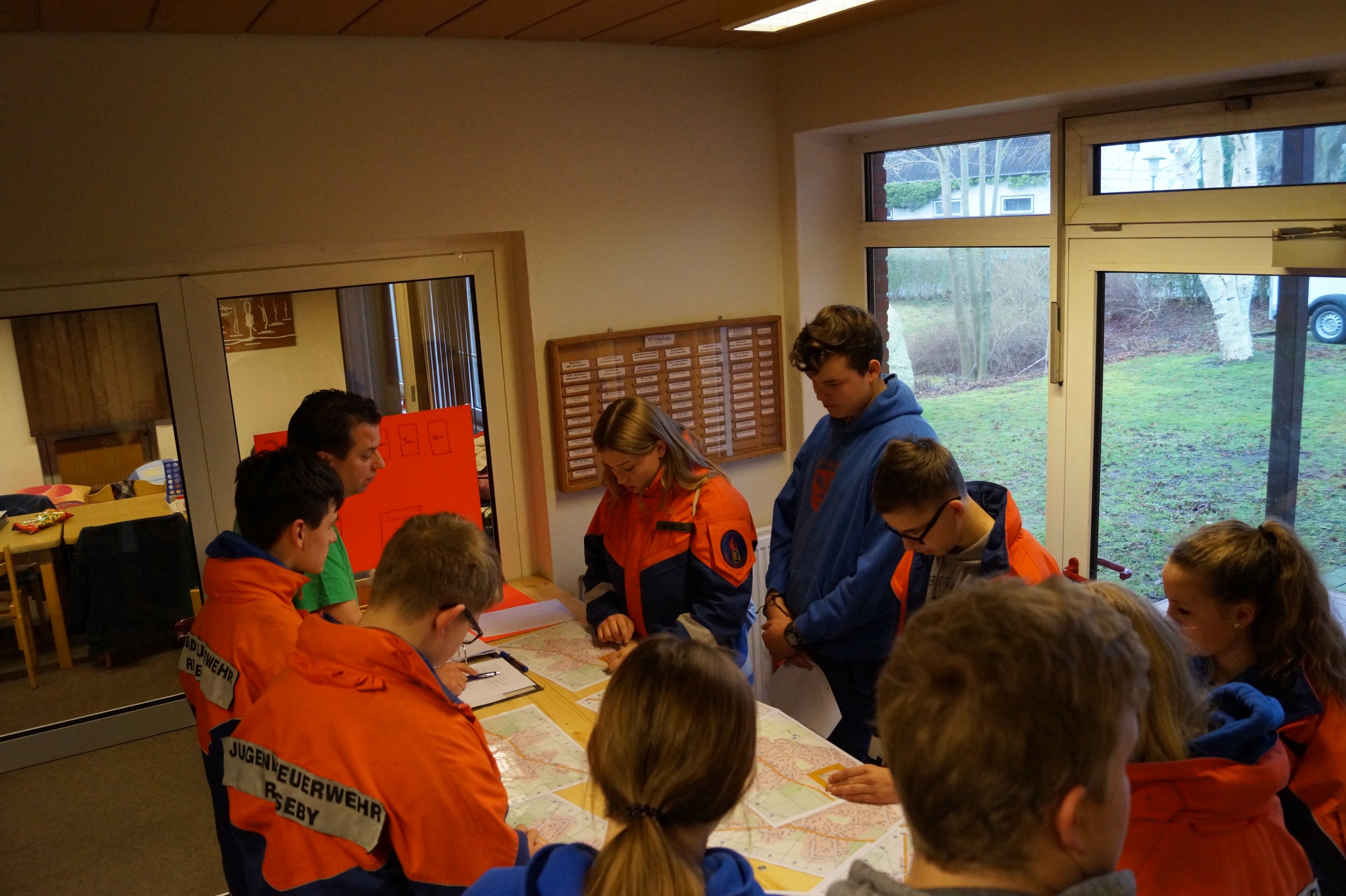 Gegen 10 Uhr startete eine Funk-Ralley durch den Ortsteil Fleckeby, bei der in acht Gruppen verschiedene Koordinaten auf einer Karte ausgelesen und gefunden werden mussten. Sobald die Jugendlichen bei dieser Koordinate angekommen waren, erhielten sie eine Aufgabe. Insgesamt mussten 22 Koordinaten gefunden werden. Die Leitstelle bildete das alte Amtsgebäude.
